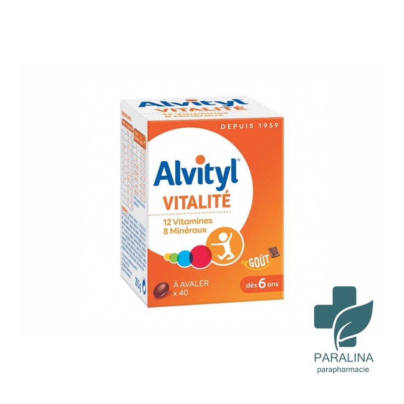 Alvityl® Vitalité effervescent est une formule complète de 12 vitamines et 10 minéraux adaptée pour les pré-adolescents dès 12 ans et pour les plus grands. Le comprimé effervescent est à diluer dans un grand verre d’eau pour une boisson vitaminée au bon goût orange. Sa formule est sans sucres et sans ajout de colorants artificiels.